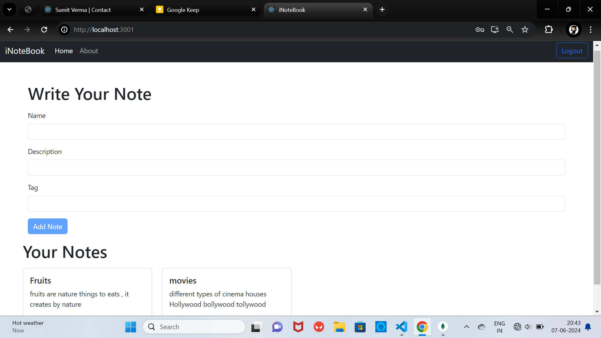 MERN iNoteBook login-signup with CRUD operation and privacy of notes